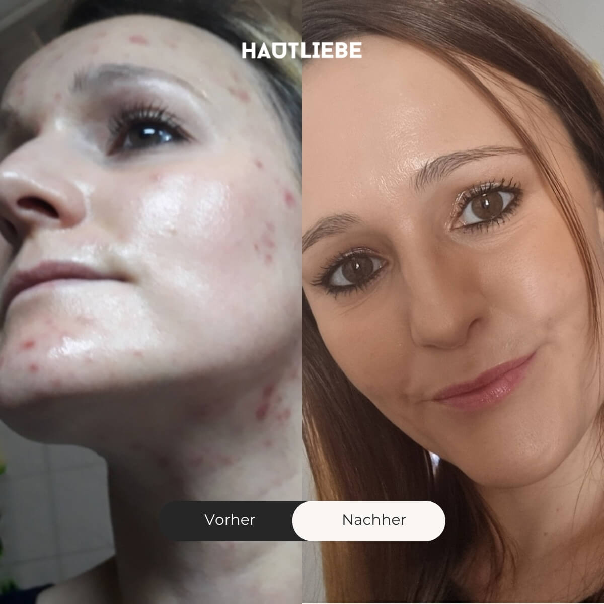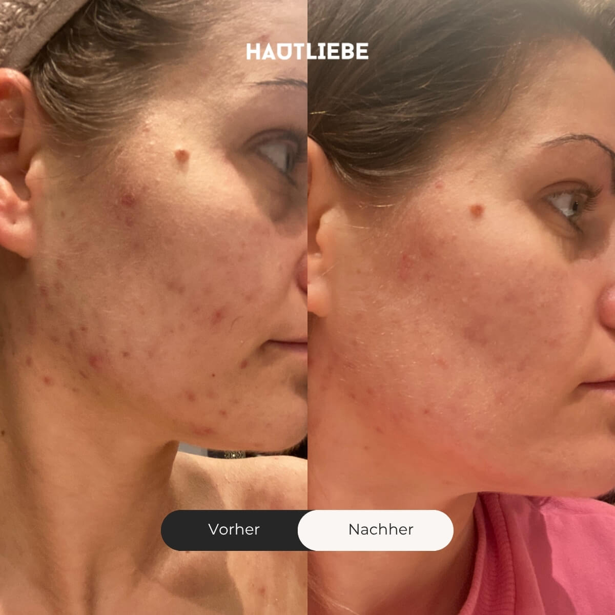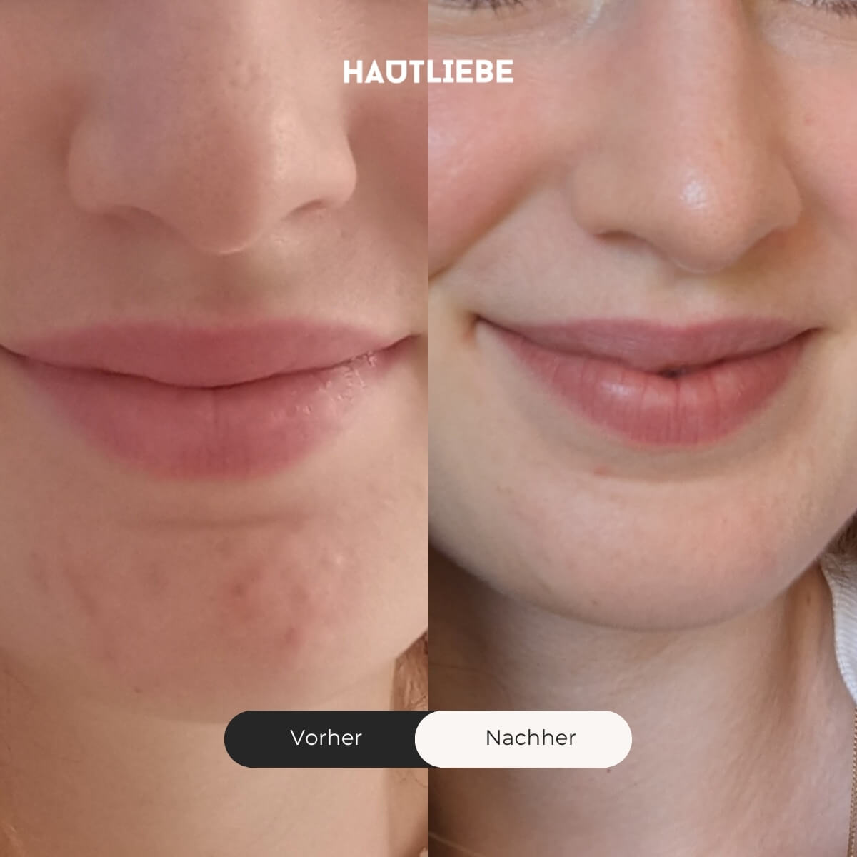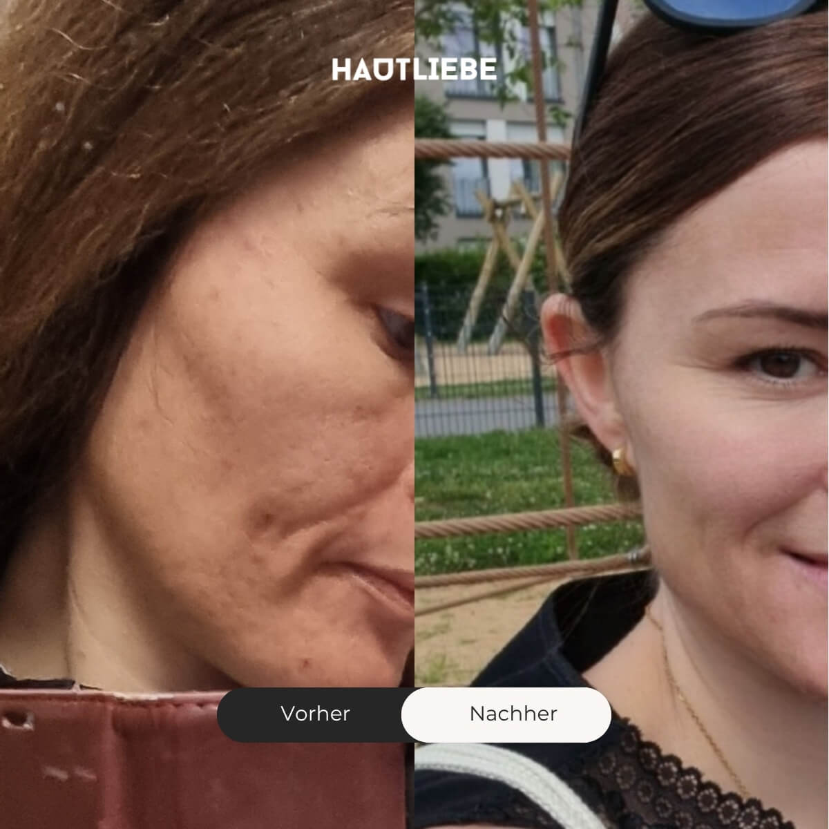 Vor den Produkten von Hautliebe hatte ich sehr unreine und entzündet Pickel. Durch zusätzliche extreme Hormonveränderungen durch einen Schwangerschaftsabbruch geriet meine Haut komplett aus der Bahn. Meine Haut war Ölig, uneben, gerötet an den Wangen. Mitverantwortlich war auch das viele FFP2 Masken tragen. Von meiner Kosmetikerin habe ich DR Spiller probiert. Eine kurze Zeit hat das auch funktioniert, nach ca 4 Monaten hat aber das ganze Spiel von vorne angefangen. Ich glaube das meine Haut keine Öligen Produkte verträgt. Ich fühlte mich unwohl, obwohl ich Bio Produkte von Dr. Spiller nutze wurde es nicht besser. Über Instagram bin ich auf Hautliebe gestoßenen. Der Ansatz mit den guten Hautbakterien klang einleuchten. Zu verlieren hatte ich nichts und bestellte mir die ersten Set‘s. Mit großen Erfolg. Meine Haut wurde endlich wieder besser. Keine Unterirdischen Pickel oder Rötungen. Seit 2019 hatte ich mit meine Plötzlich auftreten Hautproblemen zu kämpfen. Jetzt fühle ich mich wieder besser in meiner Haut :)