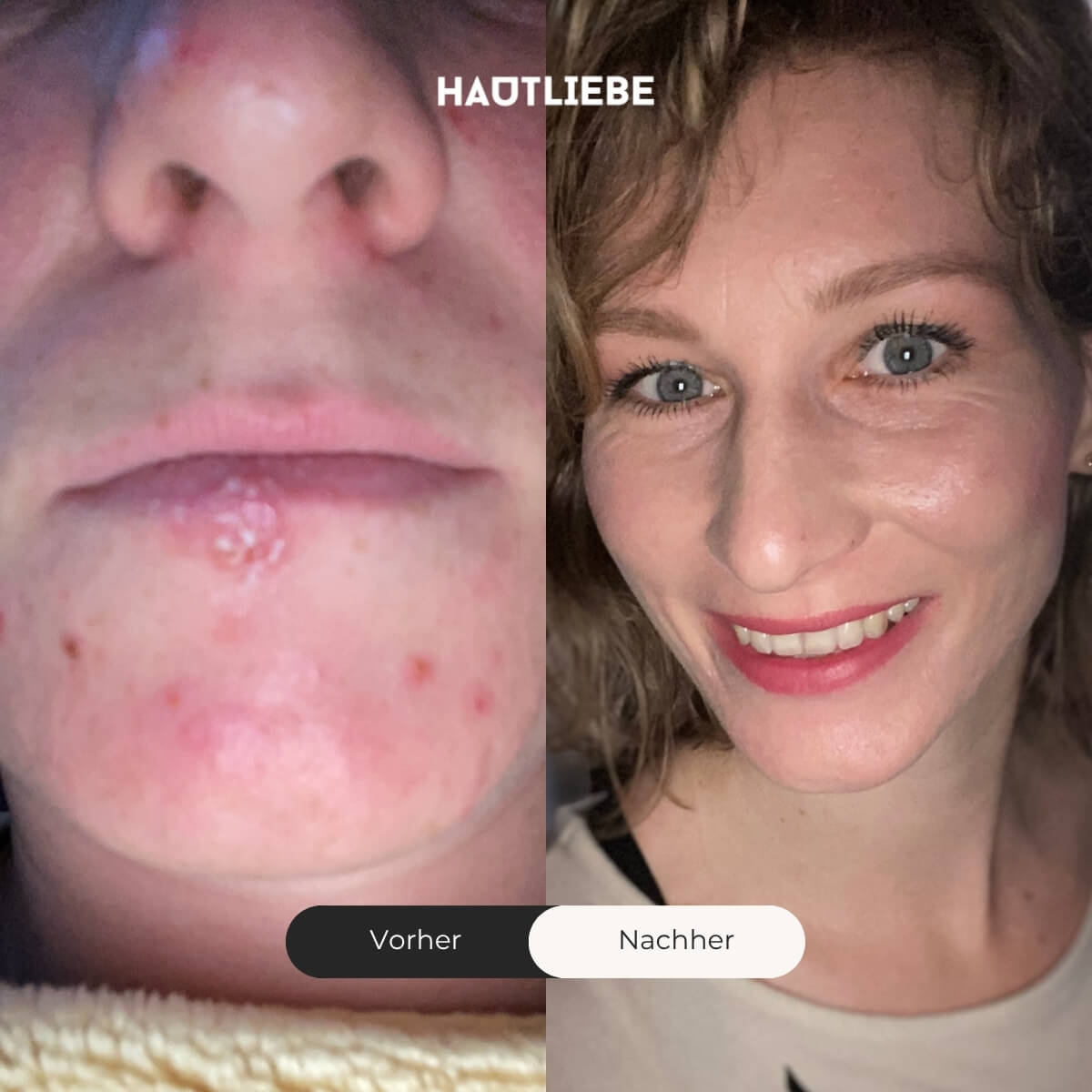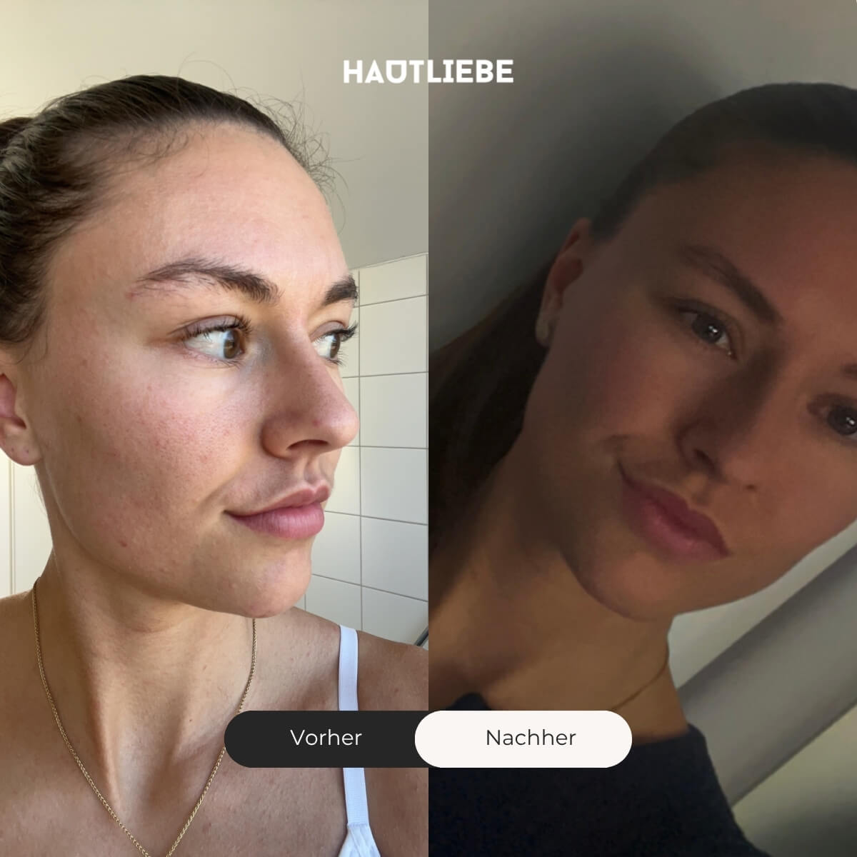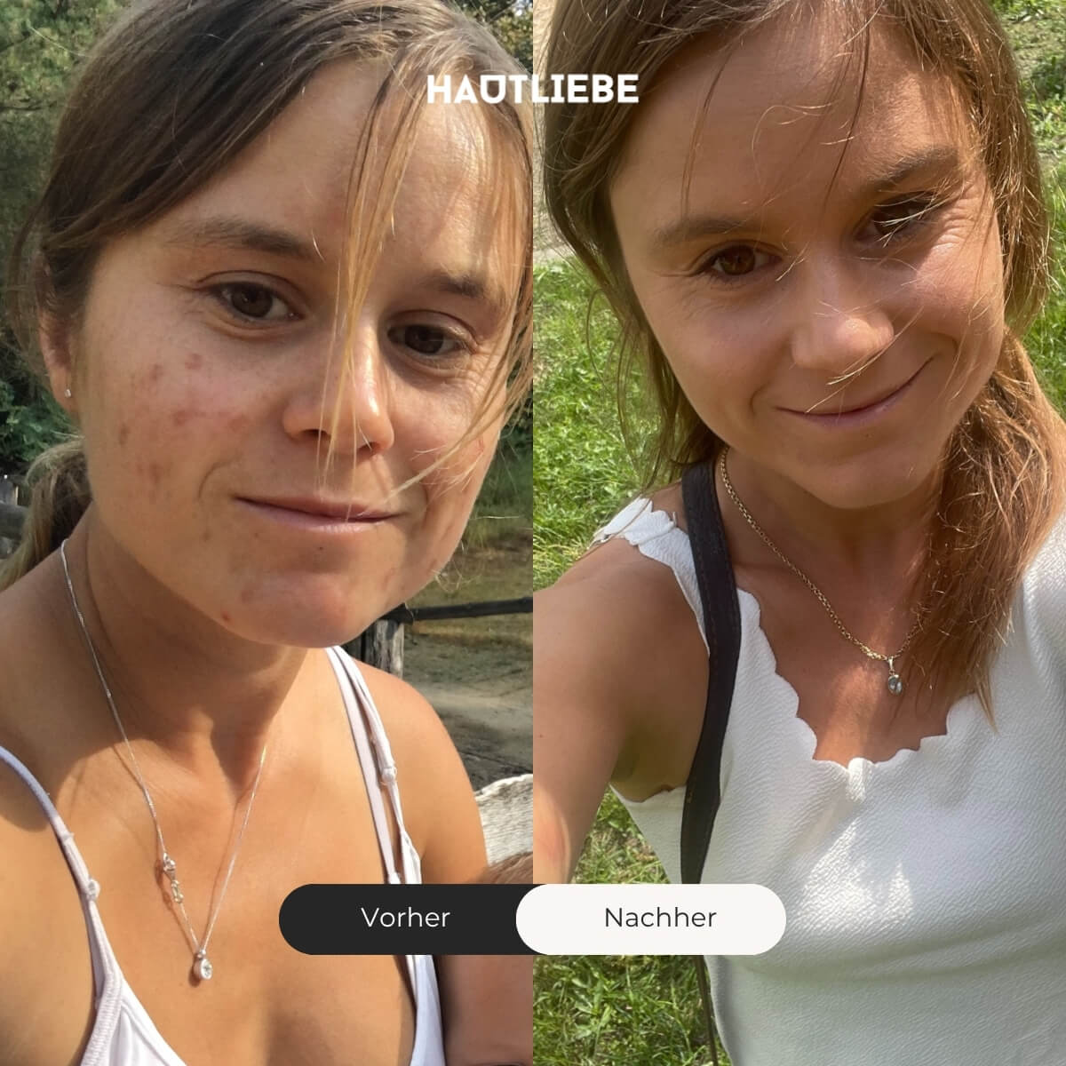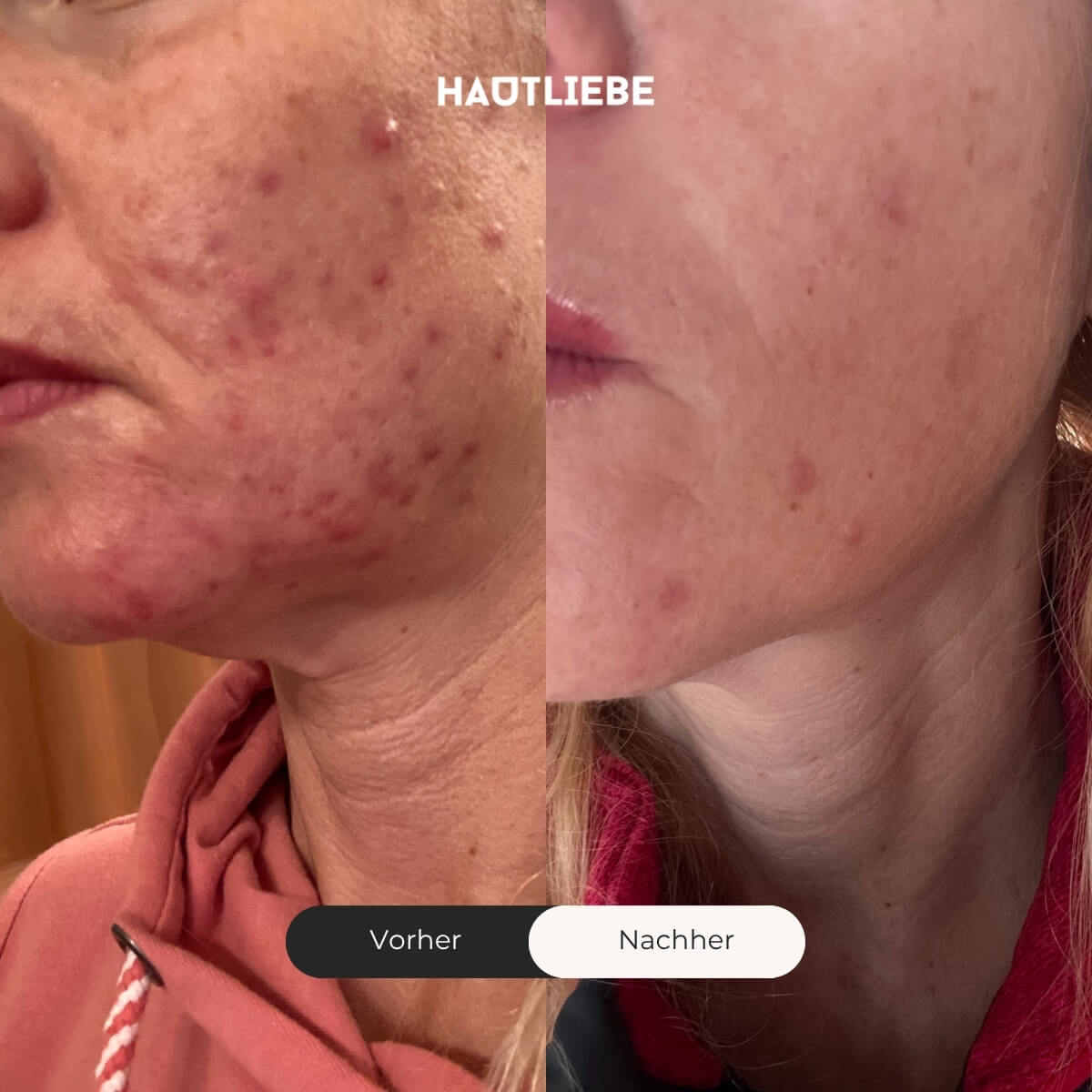 Vor den Produkten von Hautliebe hatte ich sehr unreine und entzündet Pickel. Durch zusätzliche extreme Hormonveränderungen durch einen Schwangerschaftsabbruch geriet meine Haut komplett aus der Bahn. Meine Haut war Ölig, uneben, gerötet an den Wangen. Mitverantwortlich war auch das viele FFP2 Masken tragen. Von meiner Kosmetikerin habe ich DR Spiller probiert. Eine kurze Zeit hat das auch funktioniert, nach ca 4 Monaten hat aber das ganze Spiel von vorne angefangen. Ich glaube das meine Haut keine Öligen Produkte verträgt. Ich fühlte mich unwohl, obwohl ich Bio Produkte von Dr. Spiller nutze wurde es nicht besser. Über Instagram bin ich auf Hautliebe gestoßenen. Der Ansatz mit den guten Hautbakterien klang einleuchten. Zu verlieren hatte ich nichts und bestellte mir die ersten Set‘s. Mit großen Erfolg. Meine Haut wurde endlich wieder besser. Keine Unterirdischen Pickel oder Rötungen. Seit 2019 hatte ich mit meine Plötzlich auftreten Hautproblemen zu kämpfen. Jetzt fühle ich mich wieder besser in meiner Haut :)