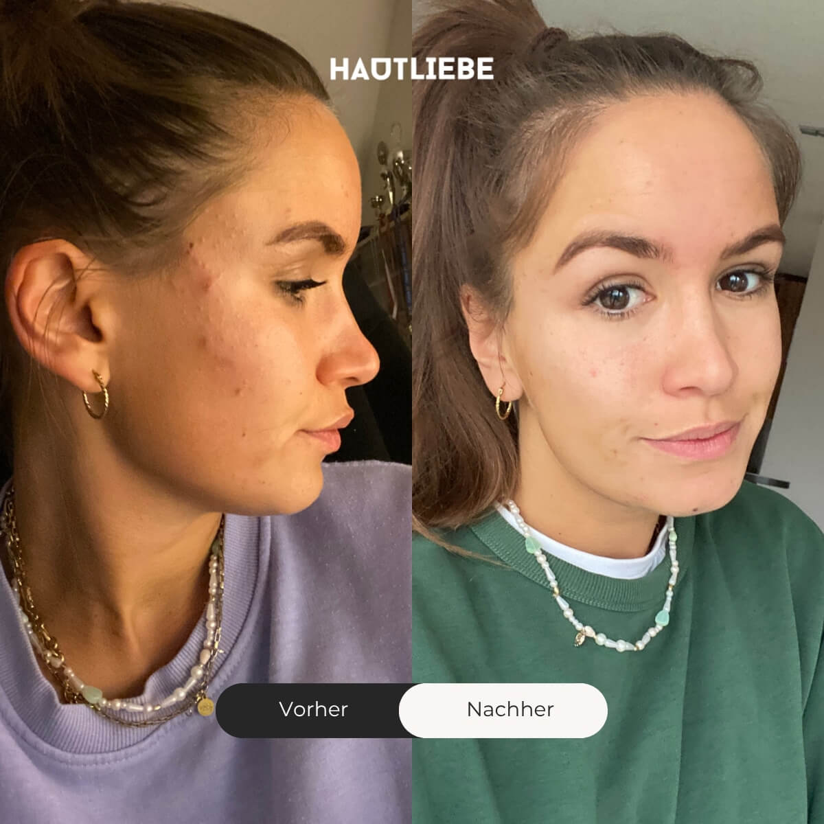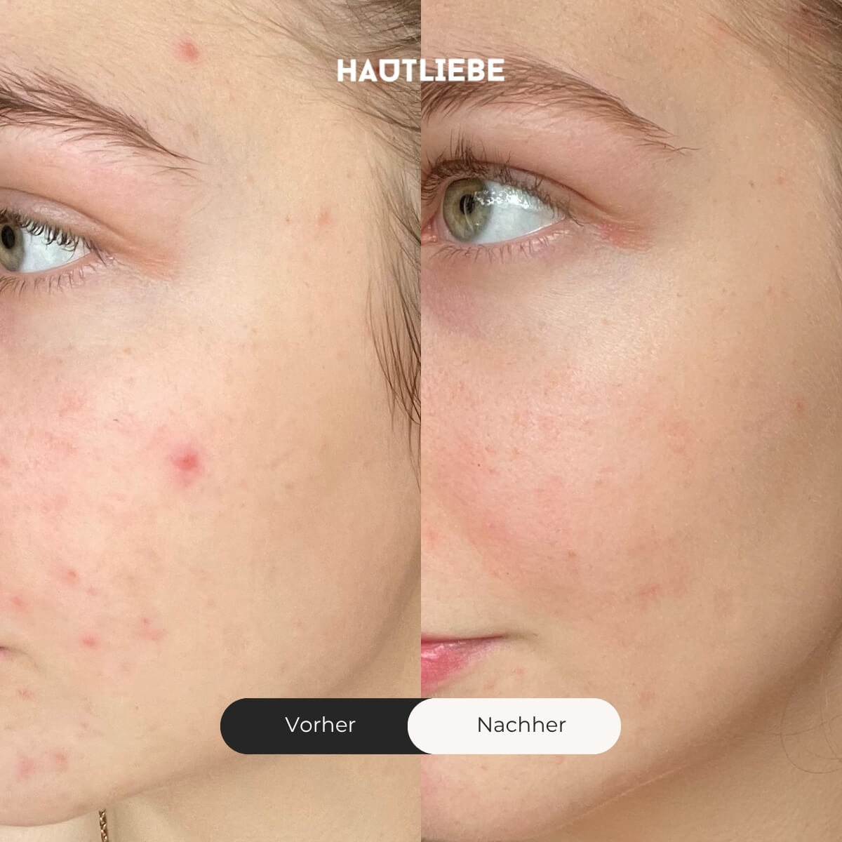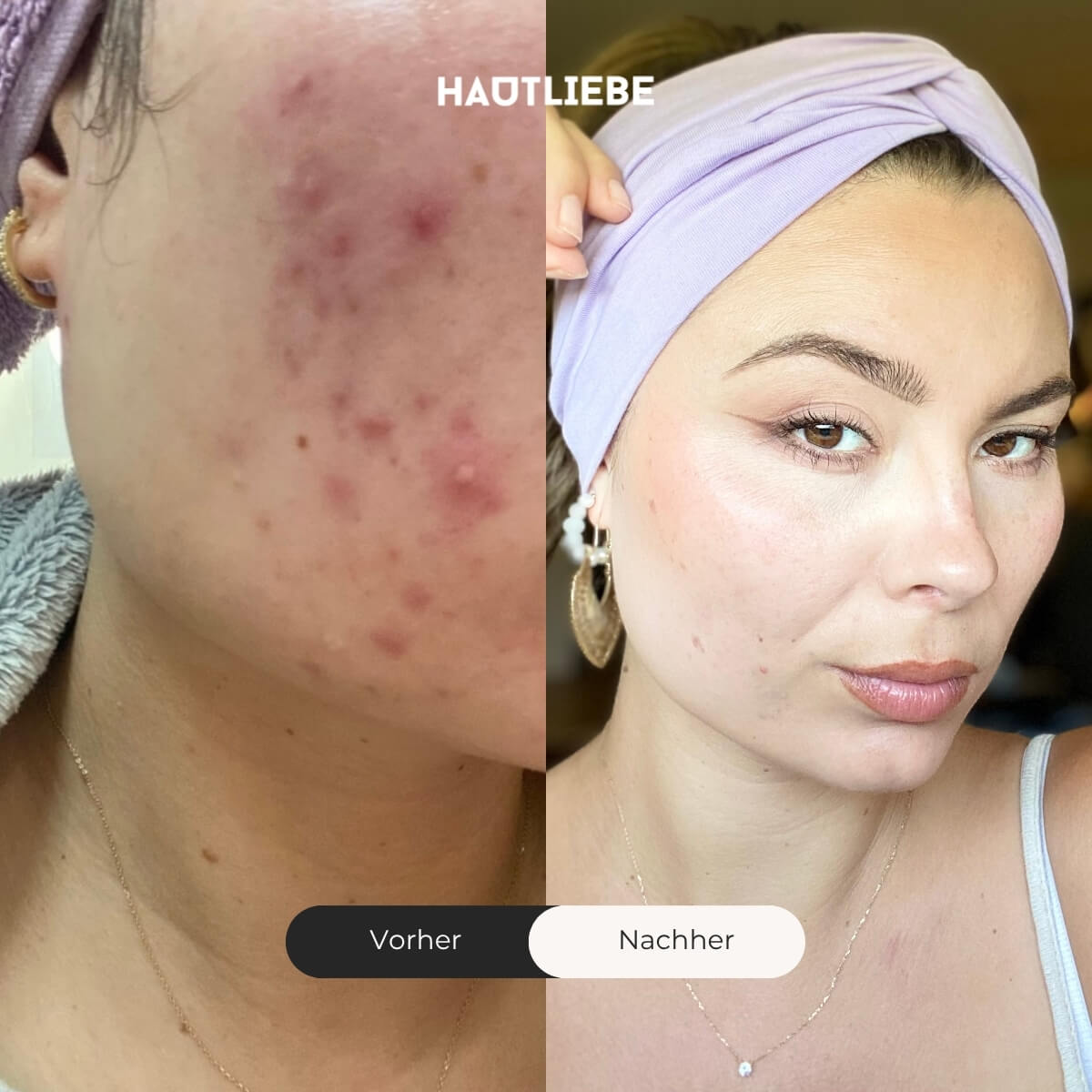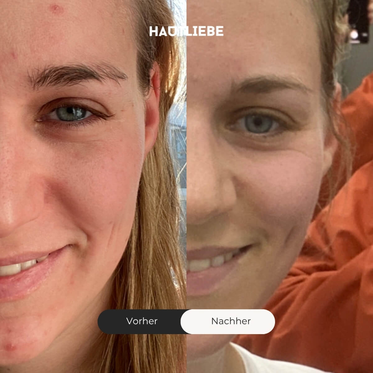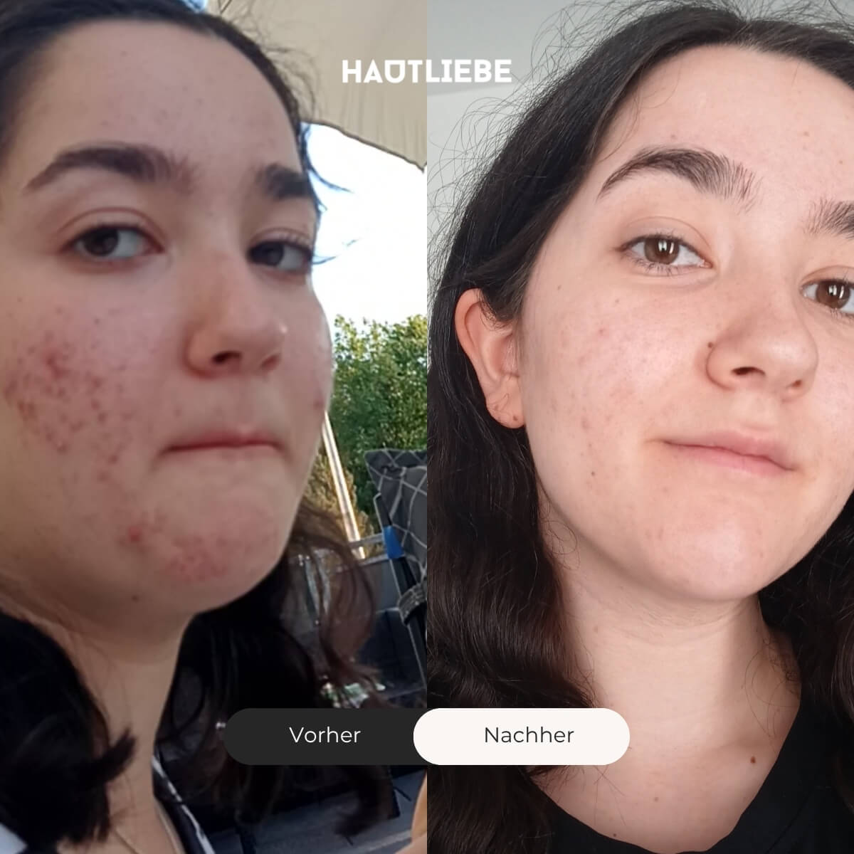 Vor den Produkten von Hautliebe hatte ich sehr unreine und entzündet Pickel. Durch zusätzliche extreme Hormonveränderungen durch einen Schwangerschaftsabbruch geriet meine Haut komplett aus der Bahn. Meine Haut war Ölig, uneben, gerötet an den Wangen. Mitverantwortlich war auch das viele FFP2 Masken tragen. Von meiner Kosmetikerin habe ich DR Spiller probiert. Eine kurze Zeit hat das auch funktioniert, nach ca 4 Monaten hat aber das ganze Spiel von vorne angefangen. Ich glaube das meine Haut keine Öligen Produkte verträgt. Ich fühlte mich unwohl, obwohl ich Bio Produkte von Dr. Spiller nutze wurde es nicht besser. Über Instagram bin ich auf Hautliebe gestoßenen. Der Ansatz mit den guten Hautbakterien klang einleuchten. Zu verlieren hatte ich nichts und bestellte mir die ersten Set‘s. Mit großen Erfolg. Meine Haut wurde endlich wieder besser. Keine Unterirdischen Pickel oder Rötungen. Seit 2019 hatte ich mit meine Plötzlich auftreten Hautproblemen zu kämpfen. Jetzt fühle ich mich wieder besser in meiner Haut :)