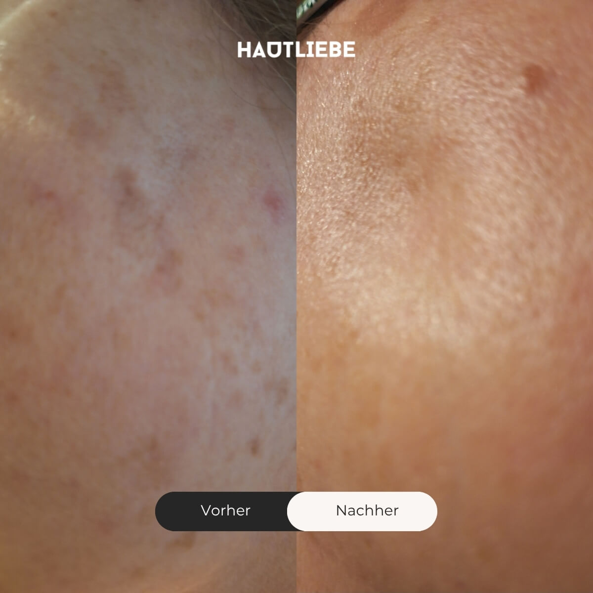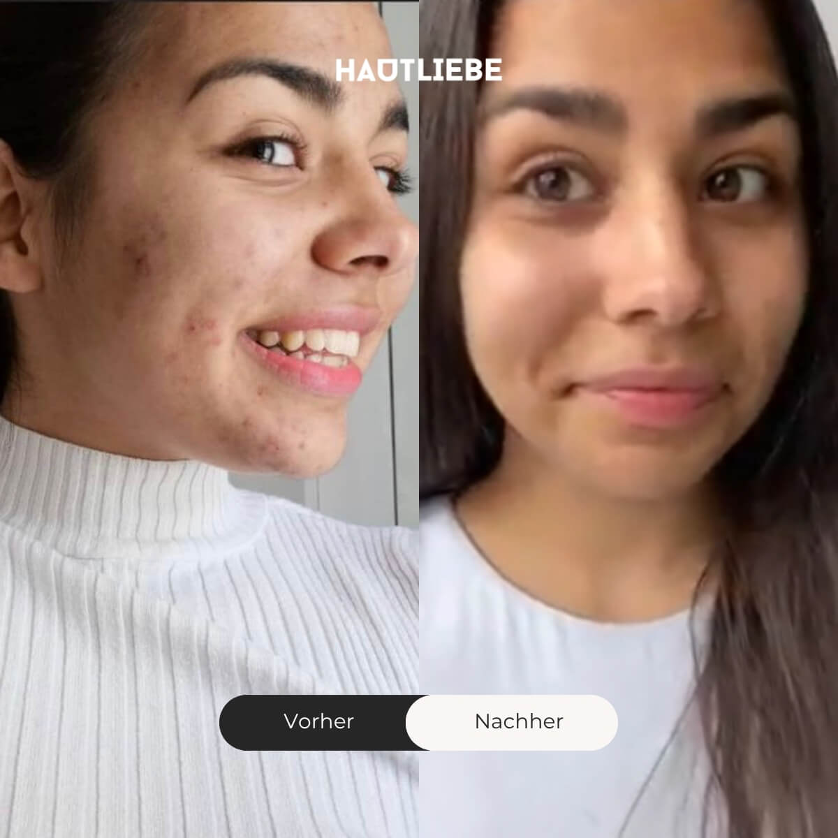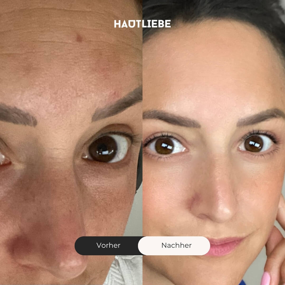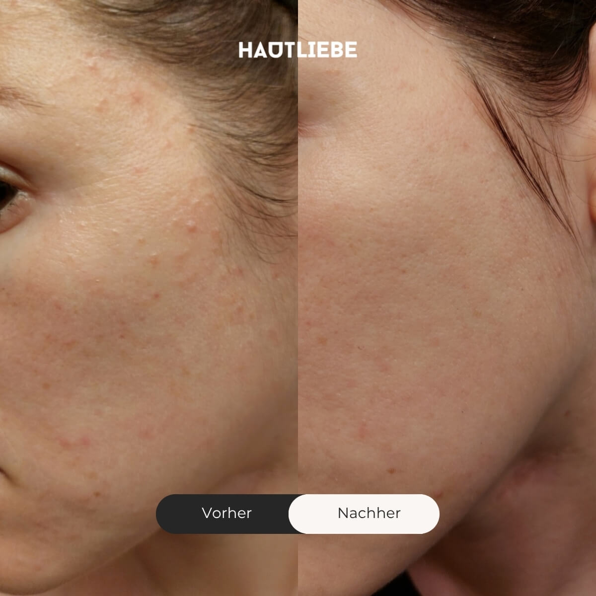 Vor den Produkten von Hautliebe hatte ich sehr unreine und entzündet Pickel. Durch zusätzliche extreme Hormonveränderungen durch einen Schwangerschaftsabbruch geriet meine Haut komplett aus der Bahn. Meine Haut war Ölig, uneben, gerötet an den Wangen. Mitverantwortlich war auch das viele FFP2 Masken tragen. Von meiner Kosmetikerin habe ich DR Spiller probiert. Eine kurze Zeit hat das auch funktioniert, nach ca 4 Monaten hat aber das ganze Spiel von vorne angefangen. Ich glaube das meine Haut keine Öligen Produkte verträgt. Ich fühlte mich unwohl, obwohl ich Bio Produkte von Dr. Spiller nutze wurde es nicht besser. Über Instagram bin ich auf Hautliebe gestoßenen. Der Ansatz mit den guten Hautbakterien klang einleuchten. Zu verlieren hatte ich nichts und bestellte mir die ersten Set‘s. Mit großen Erfolg. Meine Haut wurde endlich wieder besser. Keine Unterirdischen Pickel oder Rötungen. Seit 2019 hatte ich mit meine Plötzlich auftreten Hautproblemen zu kämpfen. Jetzt fühle ich mich wieder besser in meiner Haut :)