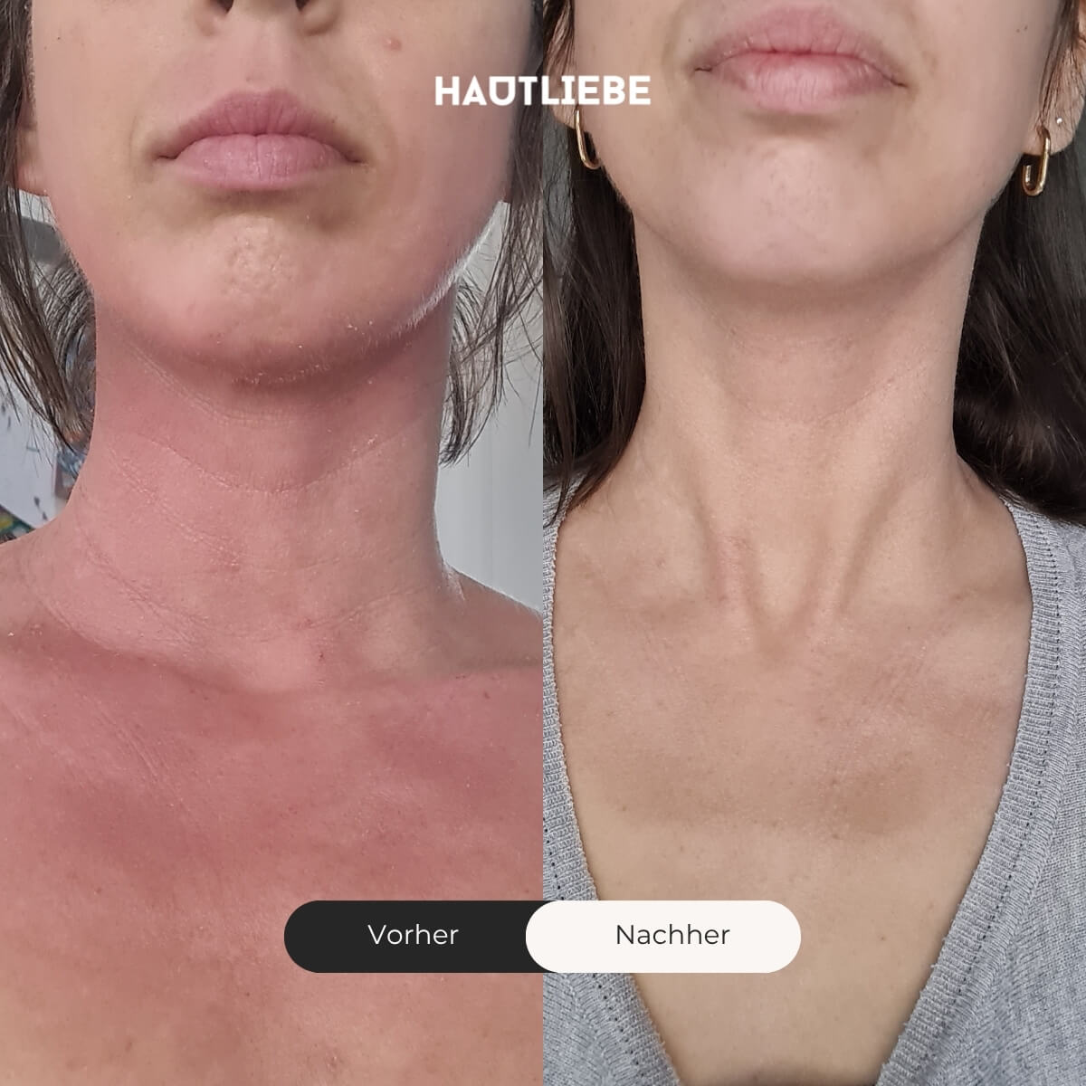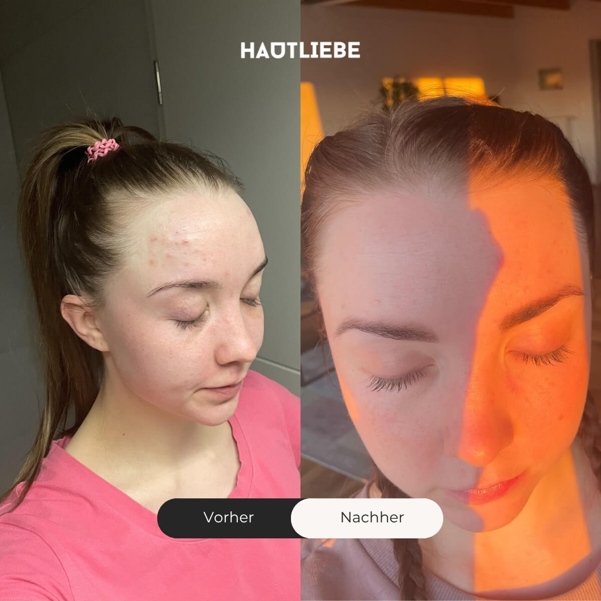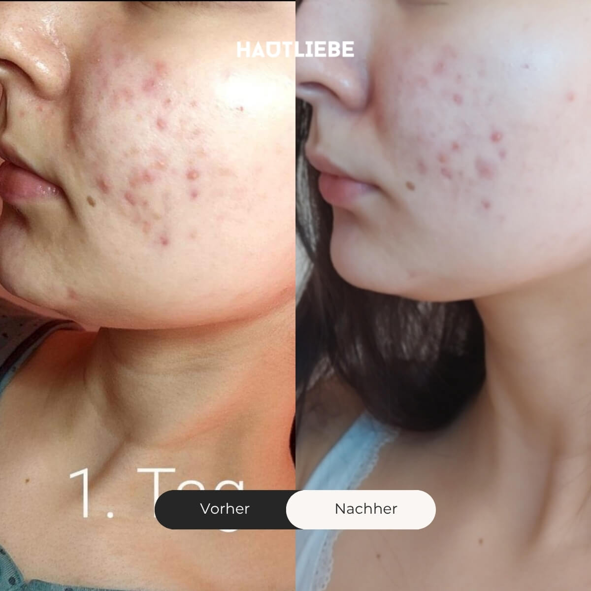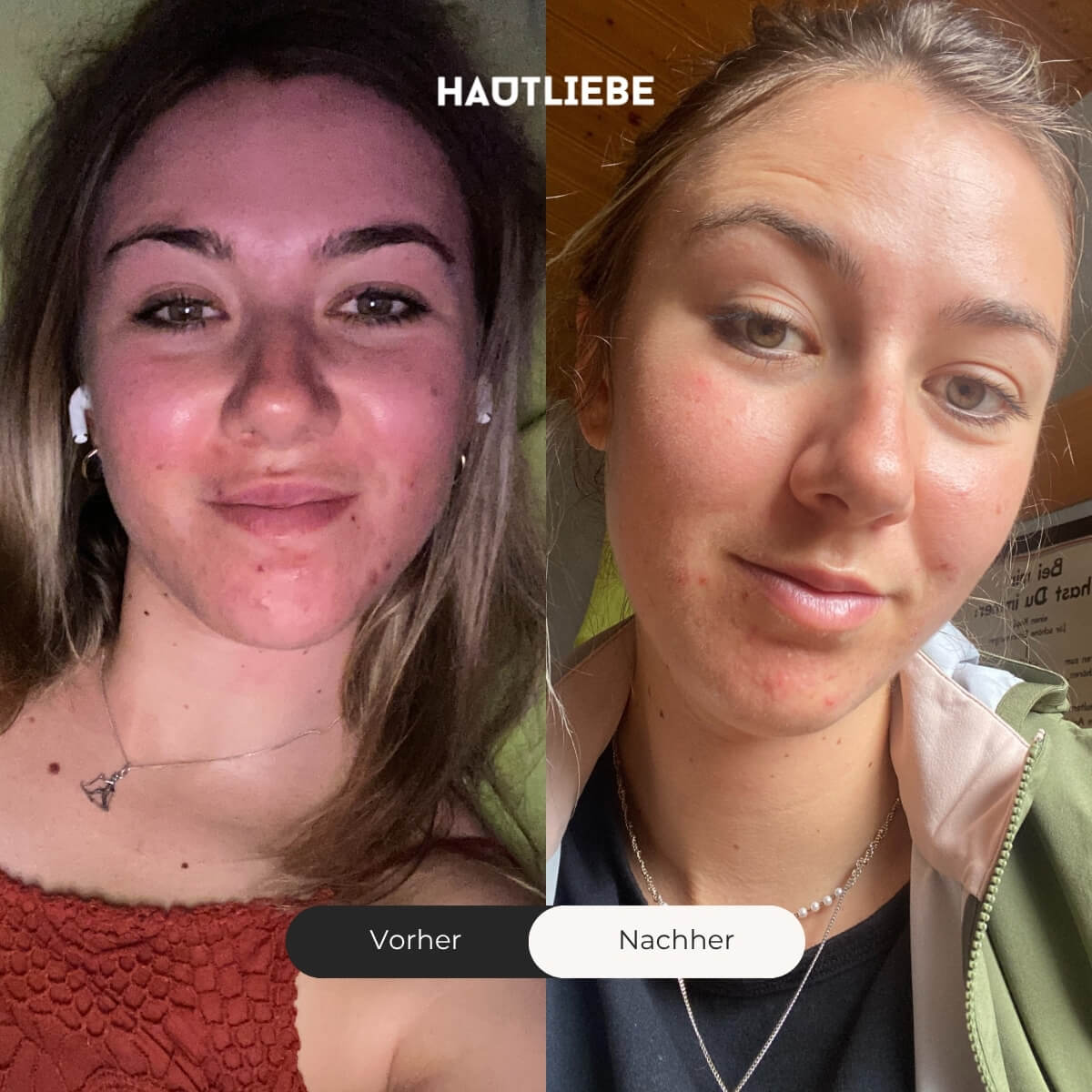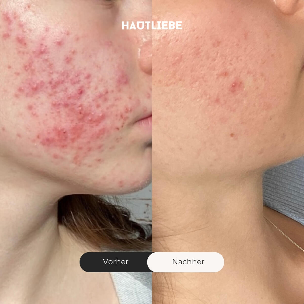 Ich bin durch Zufall über Hautliebe gestolpert und habe mir direkt das Hautliebe Ritual bestellt. Schlimmer konnte es nicht werden und ein Versuch war es wert. Innerhalb von vier Tagen sind die Rötungen verschwunden, bis der schlimmste Teil der Akne abgeklungen ist ca. einen Monat. Nur die Entzündungen brauchen etwas länger und ab und zu taucht noch eine auf, aber das ist ok. Veränderung passiert nicht über Nacht. Mein Hautbild hat sich deutlich verbessert, ich habe so gut wir keine Akne und Rötungen mehr und meine Poren sind deutlich kleiner geworden. Ich bin sehr zufrieden und bleibe definitiv bei Hautliebe