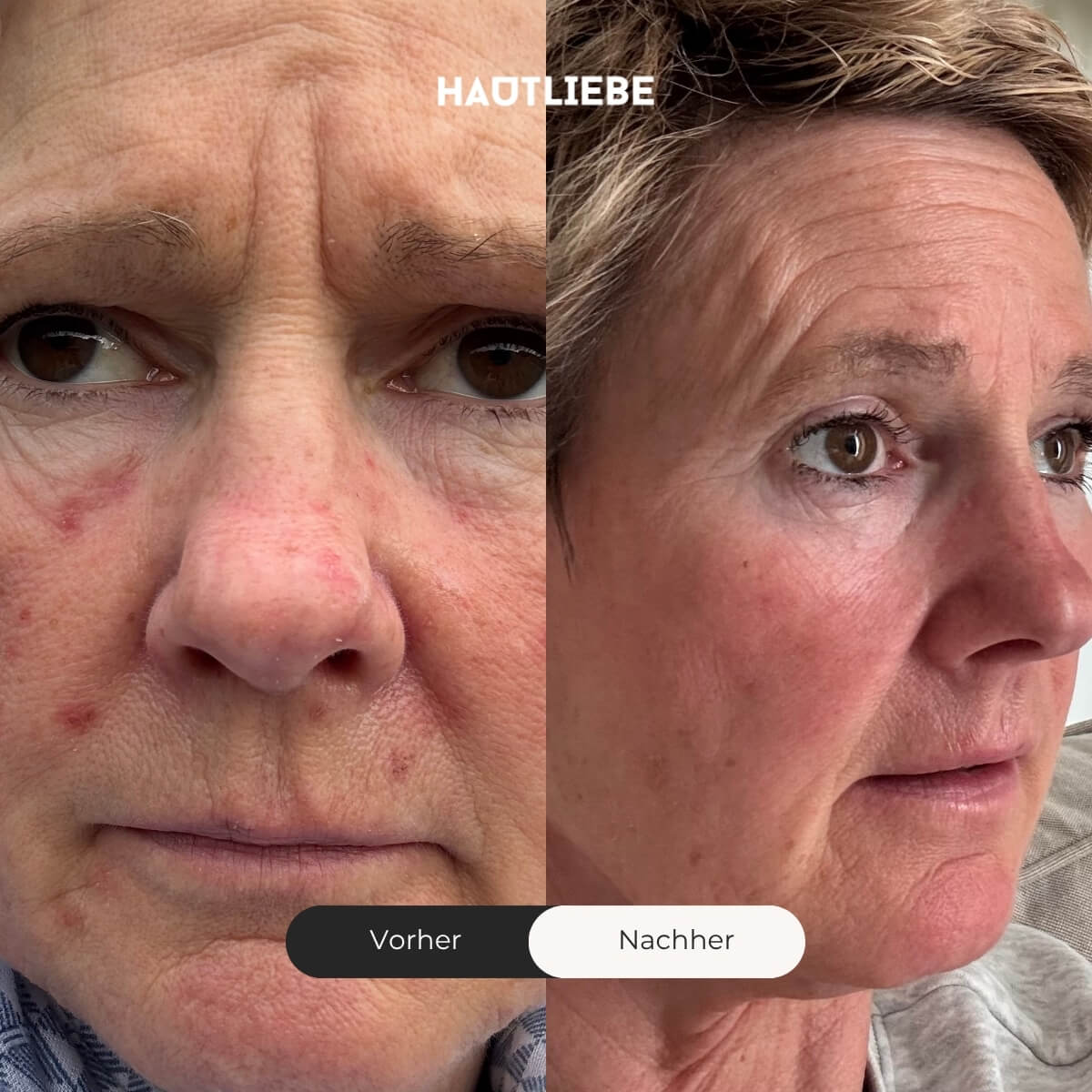 Schon nach relativ kurzer Zeit war ein Rückgang der Rötung auf beiden Wangen sichtbar - die Haut sieht und fühlt sich besser ab 👍
