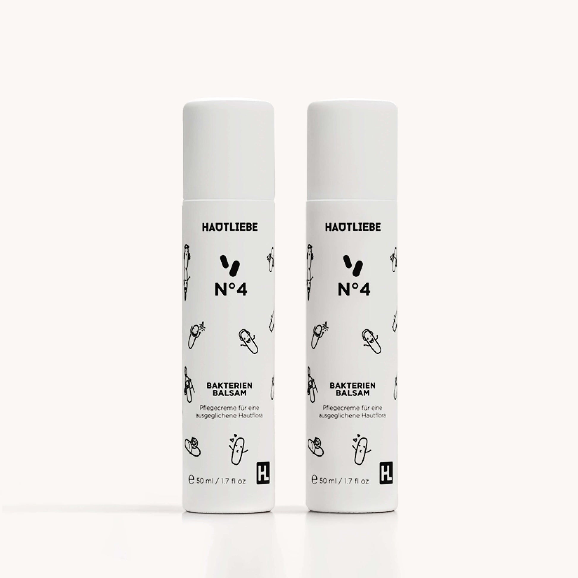 Fettbasierte Pflege: Verwende anschließend einen Pumpstoß des N°4 Bakterienbalsams und massiere ihn sanft ein, um die Feuchtigkeit in deiner Haut zu speichern. Hinweis: Innerhalb von 10 bis 20 Minuten nach der Anwendung unserer probiotischen Pflege wird das Wachstum der """"guten"""" Bakterien aktiviert. In dieser Phase empfehlen wir keine anderen Produkte aufzutragen, um eine mögliche Beeinträchtigung der Wirkung zu vermeiden. Nach Ablauf dieser Zeit lässt sich die probiotische Pflege problemlos mit anderen Produkten (z.B. Make Up oder Sonnenschutz) kombinieren.