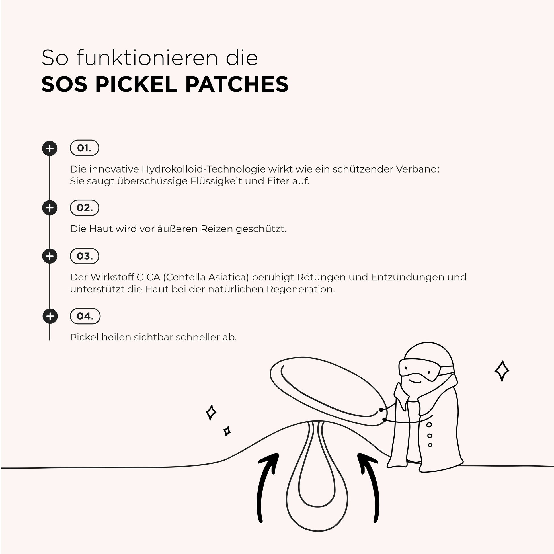 SOS Pickel Patches Inhaltsstoffe/Ingredients: POLYISOPRENE, CELLULOSE GUM, CENTELLA ASIATICA EXTRACT, POLYISOBUTENE